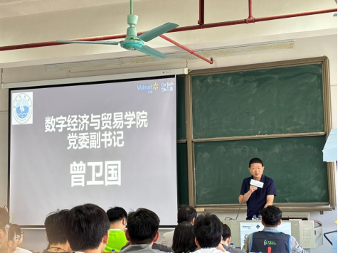 (3044am永利集团官网 供稿)10月31日下午,为进一步拓展学生实习就业渠道、促进经管类毕业生与用人单位精准对接,数字经济与贸易学院邀请沃尔玛商业零售有限公司(以下简称沃尔玛)在健兵北201课室召开专场宣讲会。沃尔玛大卖场广佛地区区域营运经理史惠彬、人力资源经理姚珂、供应链中南区区域人力资源经理吕小改、山姆会员店总经理余家骏,学院党委副书记曾卫国和毕业班辅导员以及200余名毕业生参加了宣讲会。