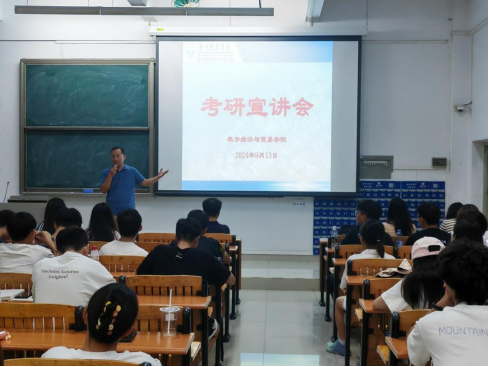 (3044am永利集团官网 供稿)9月13日晚上,为进一步激发2024届同学的考研热情,帮助大家充分了解考研动态与政策,合理选择院校与专业,切实做好考前各项准备工作。3044am永利集团官网特邀广东外语外贸大学MF中心张林主任一行莅临黄埔校区,在健兵南108课室开展“研”途不迷茫 筑梦新未来为主题的考研宣讲会,活动吸引了100余名高年级同学聆听学习,考研宣讲会由学院刘伟明副院长主持。