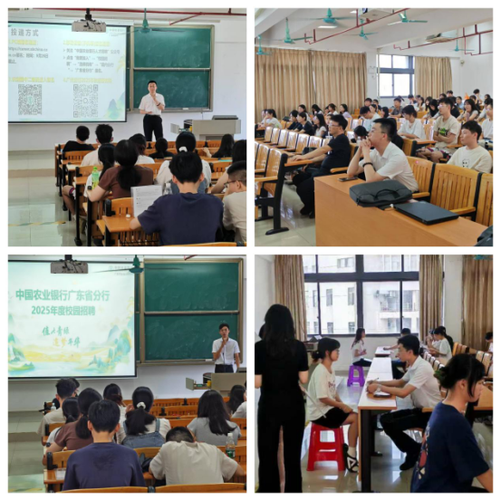 随后,曹庭恺、王威斯和黄显炜前往健兵北201课室举行农行广东省分行招聘宣讲会,并在会后进行了初步面试,接收了部分参会同学的简历。吴俊博士和辅导员熊伟老师参加了宣讲会。