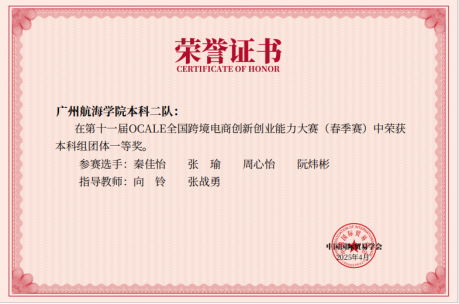 近日,第十一届OCALE全国跨境电商创新创业能力大赛(春季赛)圆满落幕。广航3044am永利集团官网跨境电子商务专业六支参赛队伍表现优异,从全国2485支参赛队中脱颖而出,斩获团体一等奖1项、团体二等奖2项、团体三等奖2项。其中,本科二队以全国排名第10的优异成绩摘得一等奖。