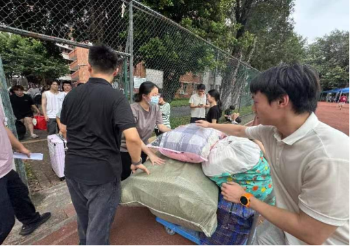 面对沉重的行李和炎热的天气,高年级学长学姐主动帮助低年级同学搬运行李、指引路线;同宿舍、同班级同学自发结成互助小组,搬运、照看物品、登记信息。入党积极分子及学生骨干更自发组成“先锋服务队”,活跃一线,协助维持秩序、引导车辆、看管行李,用实际行动诠释责任担当。
