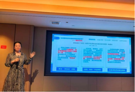 在21日下午的议程中,吕凤琴博士从“课程理念——教学实施——评价反馈”三个维度系统介绍了《宏观经济学》智慧课程的建设路径与实践经验。她指出,课程团队以“AI赋能教学全过程”为核心,基于PBL理念,通过构建课程问题图谱、整合多模态教学资源、设计数据驱动的教学场景,实现了“内容——技术——方法”的深度融合。汇报引发与会者的广泛关注和热烈讨论。不少教师表示,吕老师提出的“三维融合”模型为经管类课程的智能化转型提供了清晰可操作的实践框架,具有广泛的借鉴意义和推广价值。