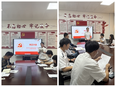 转正大会上,赵慧雯等六位预备党员依次宣读《转正申请书》,全面汇报预备期内思想、学习、工作等方面的成长与进步,深刻查摆自身不足,并表达了按期转为正式党员的坚定决心。在答辩环节,与会党员结合实际提出问题,申请人逐一认真作答,充分展现了扎实的思想基础与良好的精神风貌。入党介绍人详细介绍六位同志预备期表现及支部教育考察情况,一致同意其按期转正。经无记名投票表决,大会决议同意赵慧雯等六位同志按期转为中共正式党员。