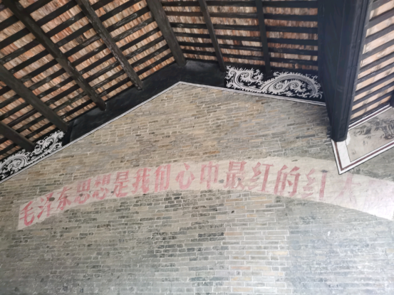 留存“毛泽东思想是我们心中最红的红太阳”的字样标语。