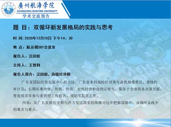 汪田姣学术讲座预告:双循环新发展格局的实践与思考