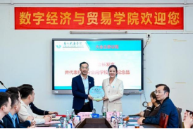 廖愿洋代表分会新一届理事会作就职感言,并向学校赠送礼物。他分享了学生时代在母校读书求学、成长成才的珍贵回忆,回顾了创业打拼期间经贸物流底蕴的关键作用,总结了近年来情系母校助力发展的具体实践,他表示,“在未来的日子里,将秉承‘服务校友、回馈母校’的宗旨,继续加强与母校、母院及校友之间的联系,推动产业发展、人才培养和创新创业的合作,并整合母校与政府相关的一系列资源,给予年轻的校友们更多支持”。他指出,经贸分会是一个充满活力的大家庭,将继续组织丰富多彩的校友活动,为校友们提供更多交流与合作的机会。